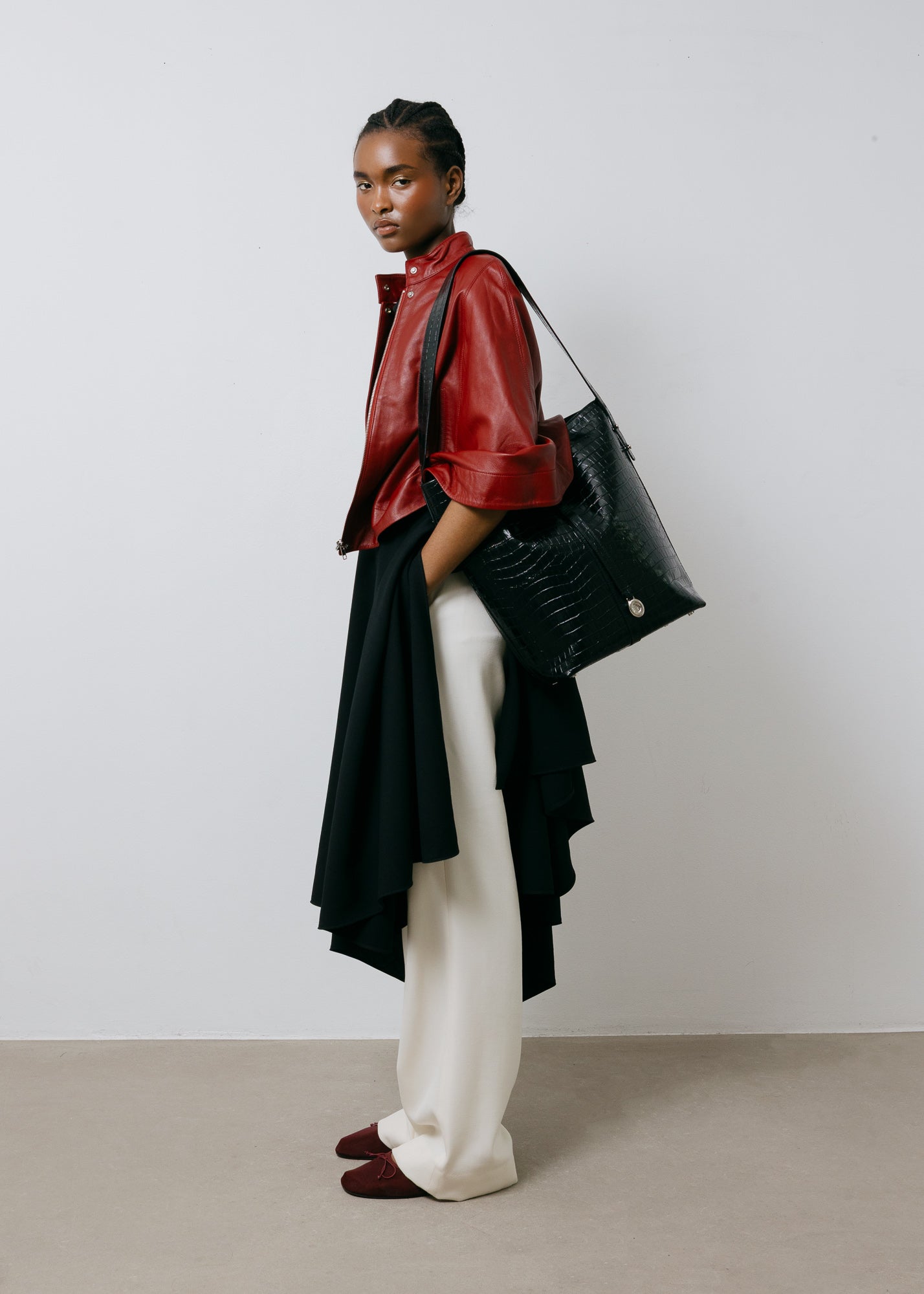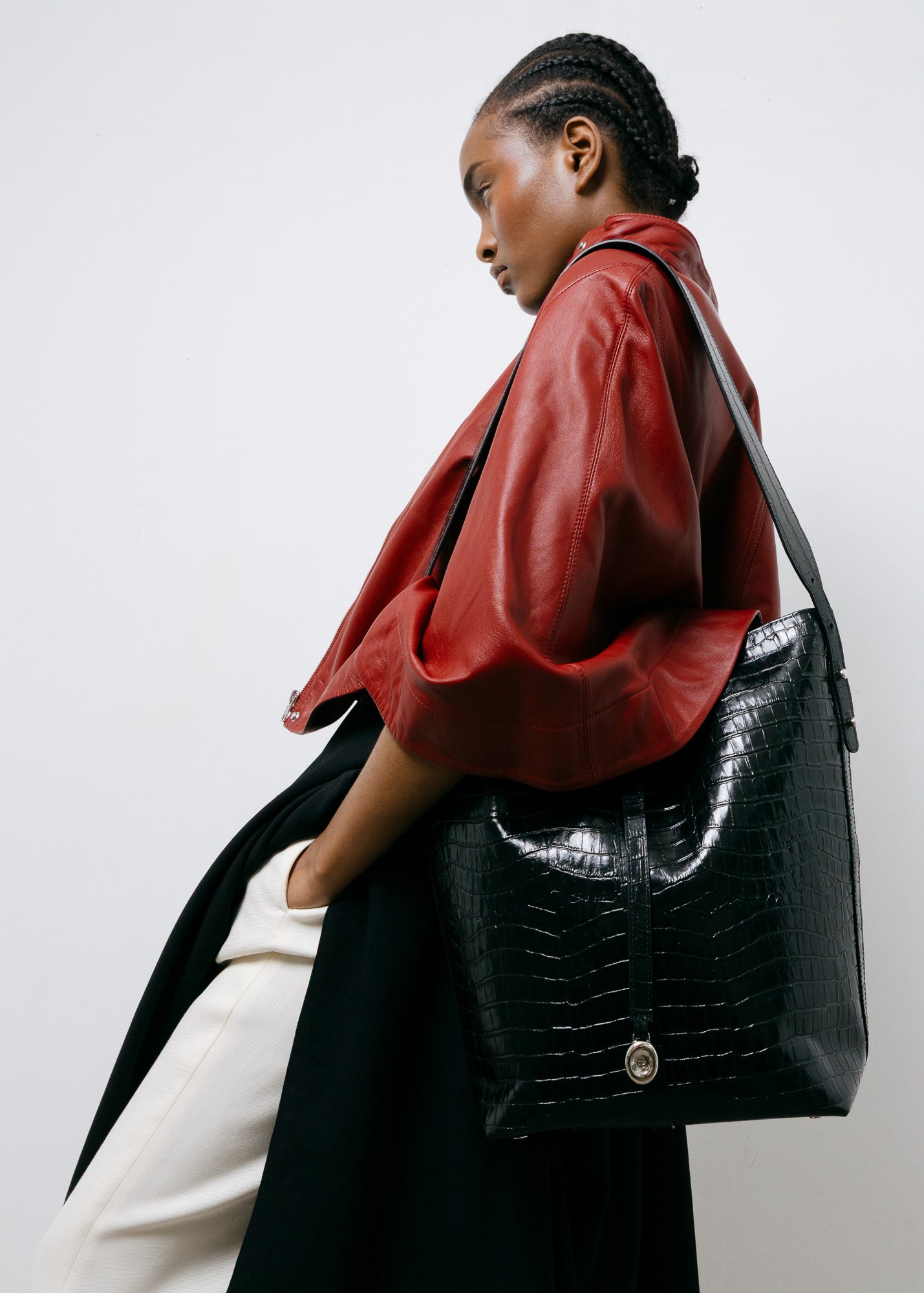 Crocodile embossed cow leather. To learn more about our leathers, visit the Materials and Origin section.