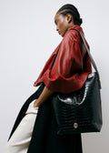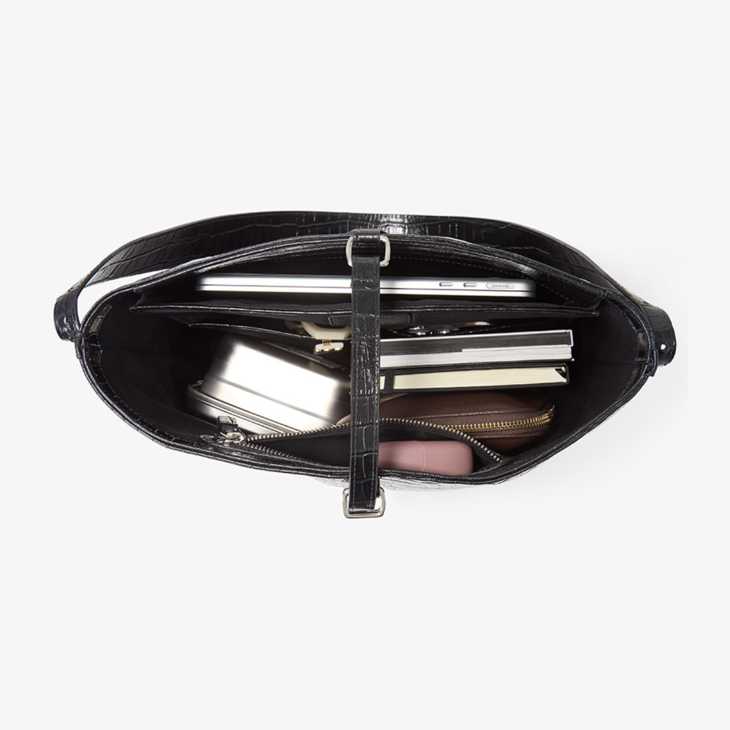 The Bucket Bag is a soft work bag with a structured bottom to be able to hold heavy items without compromising on quality. It sits elegantly on your shoulder and can be adjusted into a cross body bag. It's lightweight and comfortable to wear due to the wide shoulder strap.