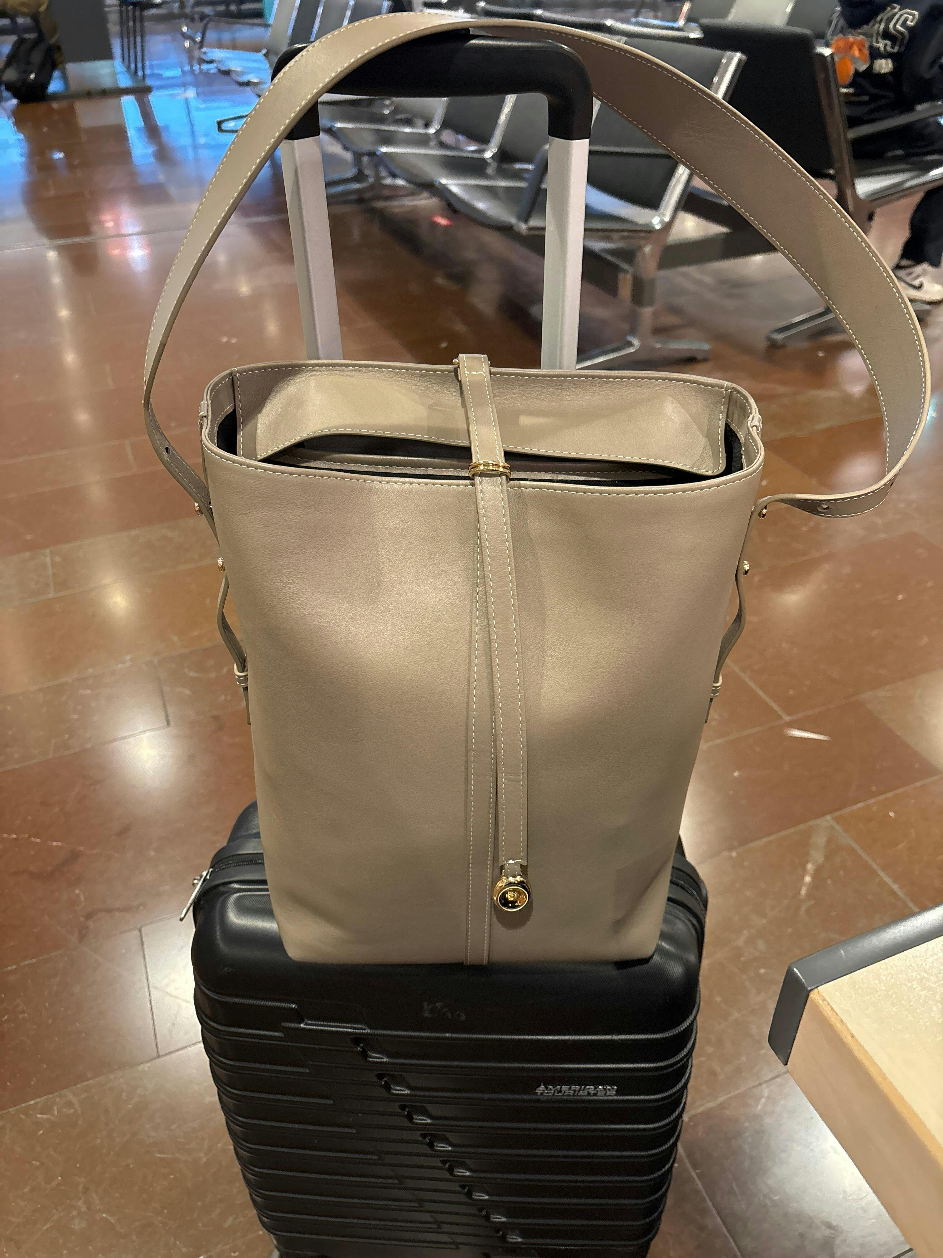 The Bucket Bag is a soft work bag with a structured bottom to be able to hold heavy items without compromising on quality. It sits elegantly on your shoulder and can be adjusted into a cross body bag. It's lightweight and comfortable to wear due to the wide shoulder strap.
