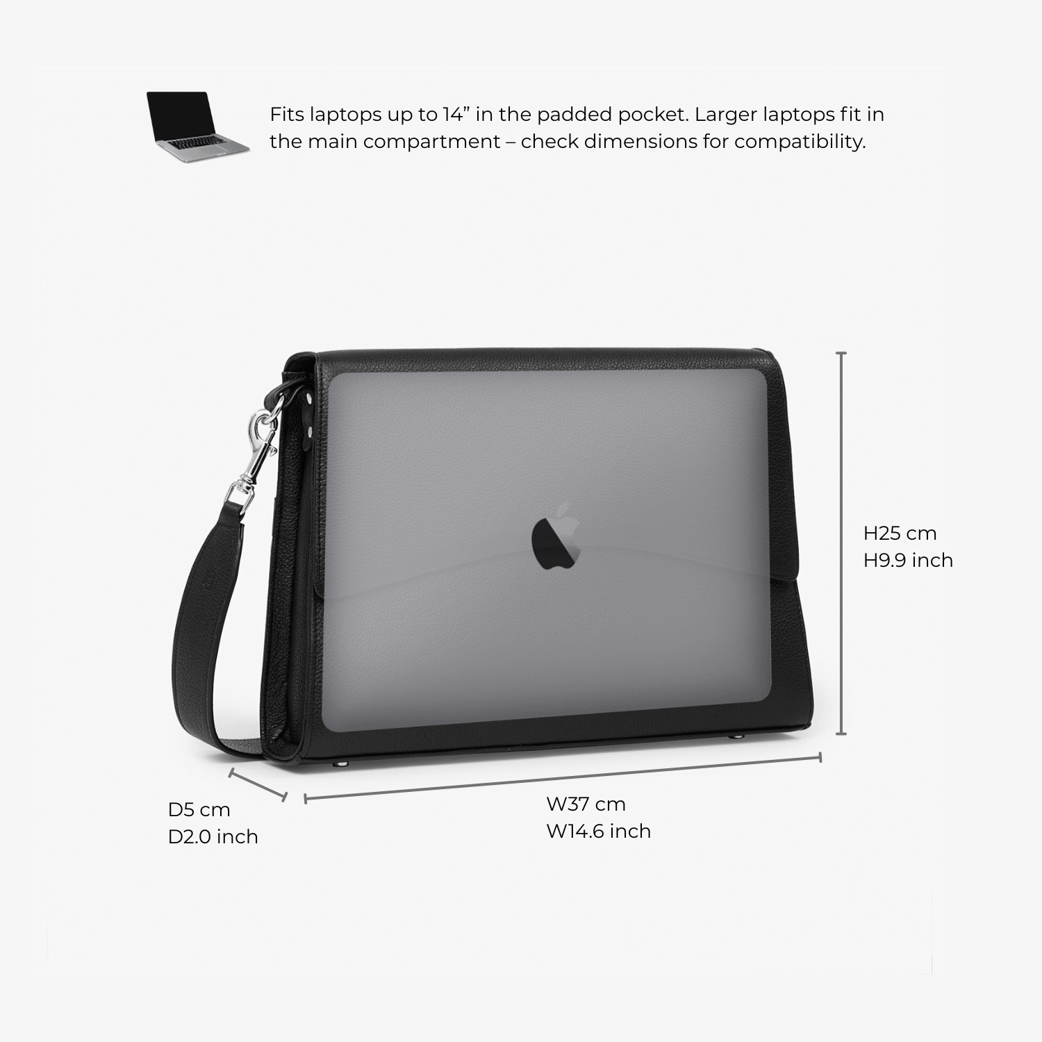 - Bag: H25 x W37 x D5 cm | H9.9 x W14.6 x D2 "