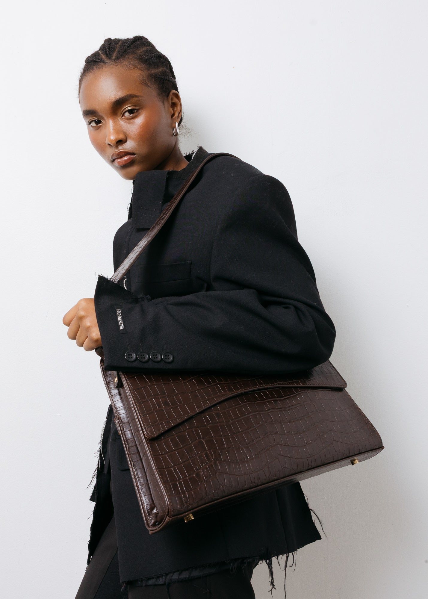 Crocodile embossed cow leather. To learn more about our leathers, visit the Materials and Origin section.